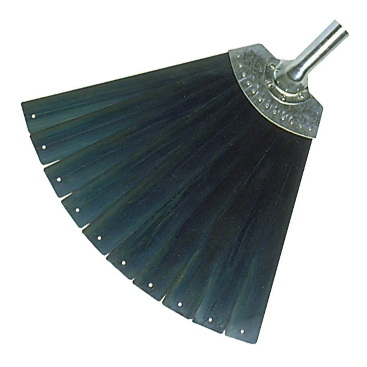 Bestående af ti fjederståls-tunger, nittet fladt over hinanden med konisk dølle. Bladlængde 400 mm, bredde 500 mm. Vægt 1500 g.