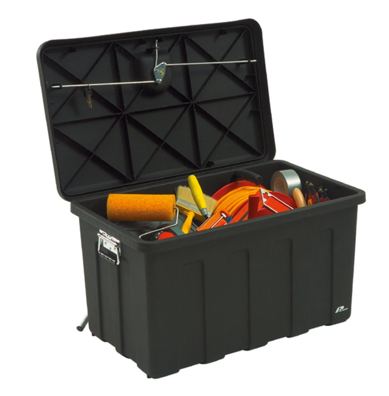 Med overliggende låg. Sikkerhedslås med 2 nøgler. Med lås i højre og venstre side og midt for. Mål 80 x 50 x 47 cm. Vægt 8020 g.