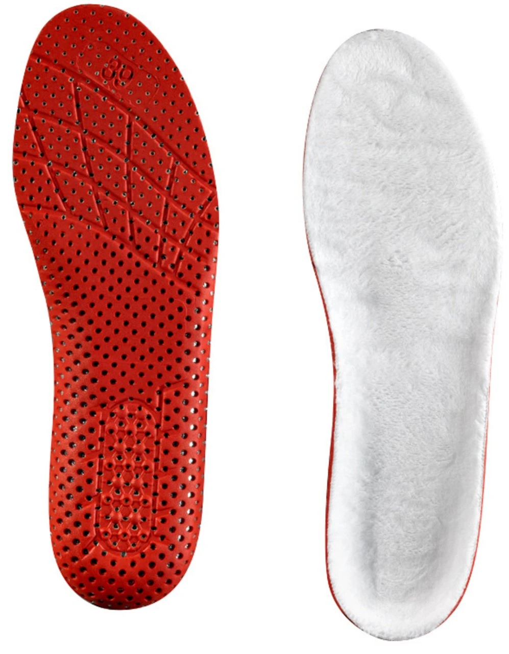 Kuldeisolerende sål med en blød- og varm overflade. Beskyttende aluminiumsbelægning, og Memory-Foam der tilpasser sig individuelt og stabilt til foden.