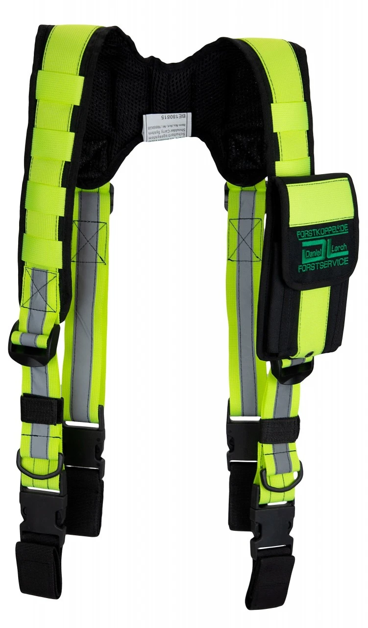 Skulderbæresystemet til Forstkoppel udgør en ergonomisk fordelagtig udvidelse til værktøjsbæltet. Det fordeler noget af belastningen fra det medbragte værktøj på skuldrene. Skulderbæresystemet kan selvfølgelig justeres til den enkelte.