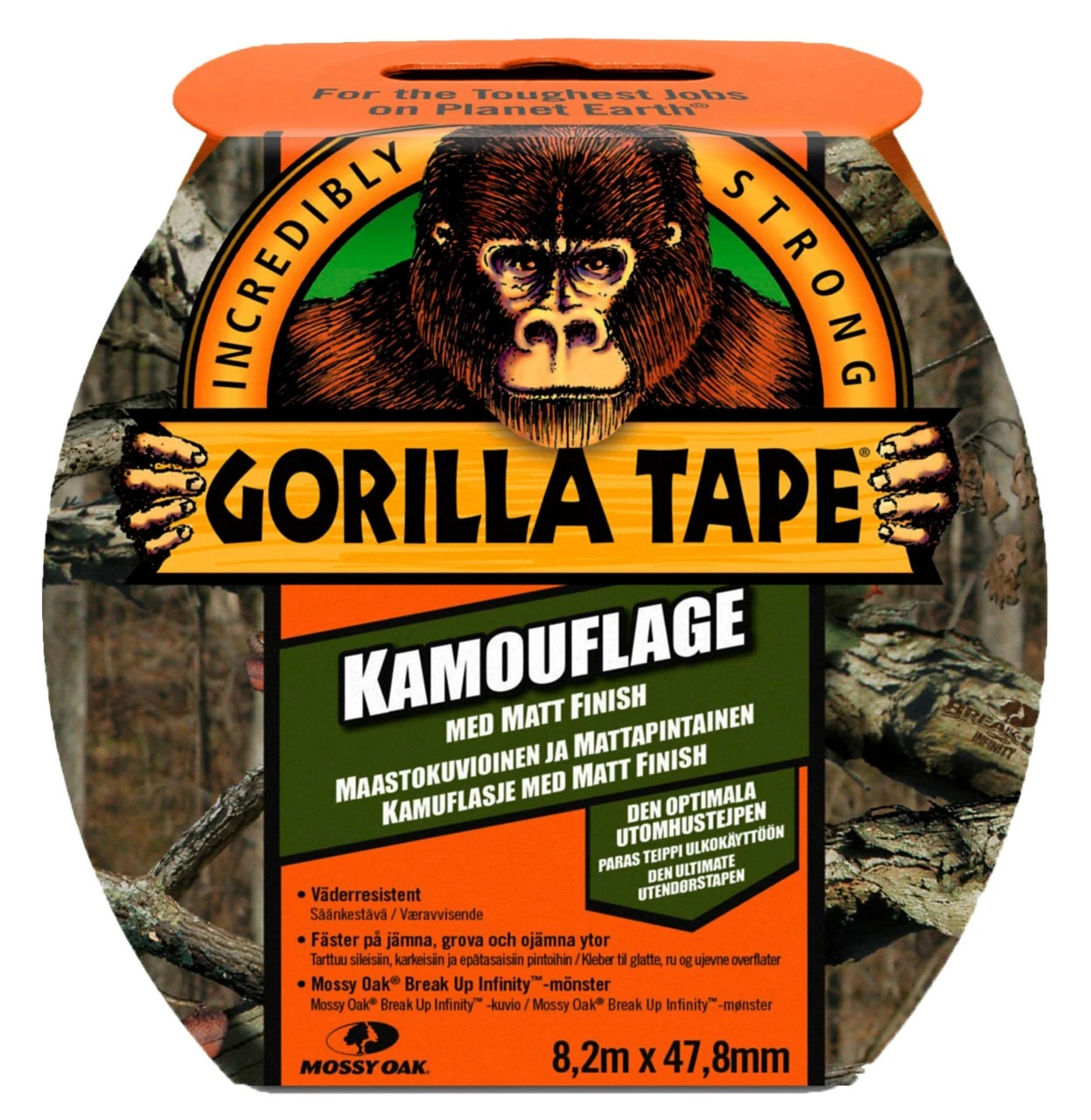 Der er ingen tape, der ligner dette. Gorilla Tape er det ekstremt stærke tap til både indendørs og udendørs job. Det er stærkt og forstærket, men alligevel kan trækkes af med hånden. tapen binder til ru, ujævne, utilgivelige overflader som træ, sten, gips, gips, mursten og meget mere. Gorilla Tape har en holdbar overflade, der tåler alt vejr. Overfladen skaber en tæt barriere, der modstår fugt, UV-stråler og ekstreme temperaturer. Bagsiden af båndet er forstærket med ekstra tæt væv. Endelig er klæbemidlet på båndet dobbelt så tykt som på traditionelle sølvbånd og fylder huller på ru, ujævne overflader og giver et superstærkt greb. Med matt Mossy Oak® Break Up Infinity™-mønster.