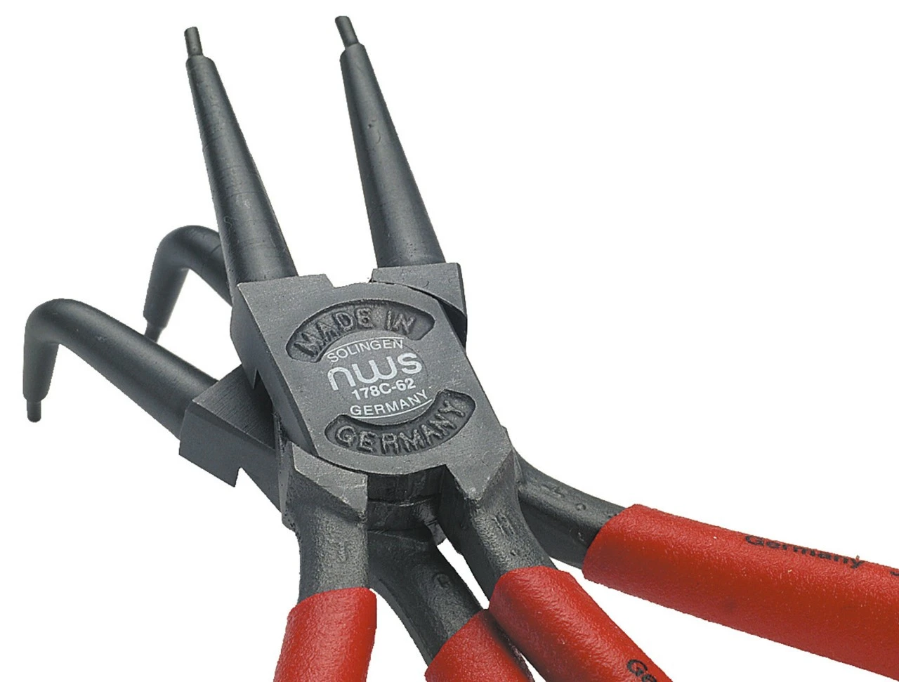 Hver to tænger for hhv. udvendige og indvendige ringe. Lige bakker samt bakker vinklet 90°